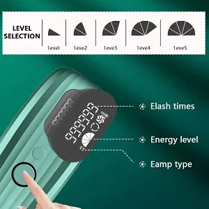 5 adjustable energy levels according to the skin tolerance. Providing gentle and painless treatment easily without hurting the skin. It is recommended that beginners should start from the first energy level so that the skin can gradually adapt to the IPL hair removal system.